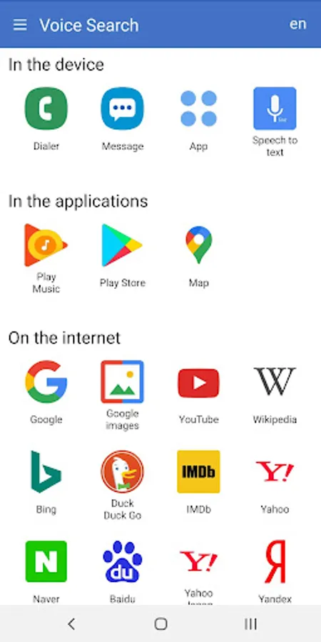 Voice search app make it faster and easier to search contacts, search images, search applications, search information using voice recognition.