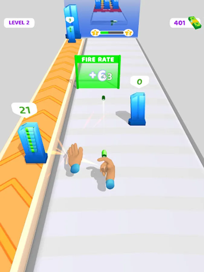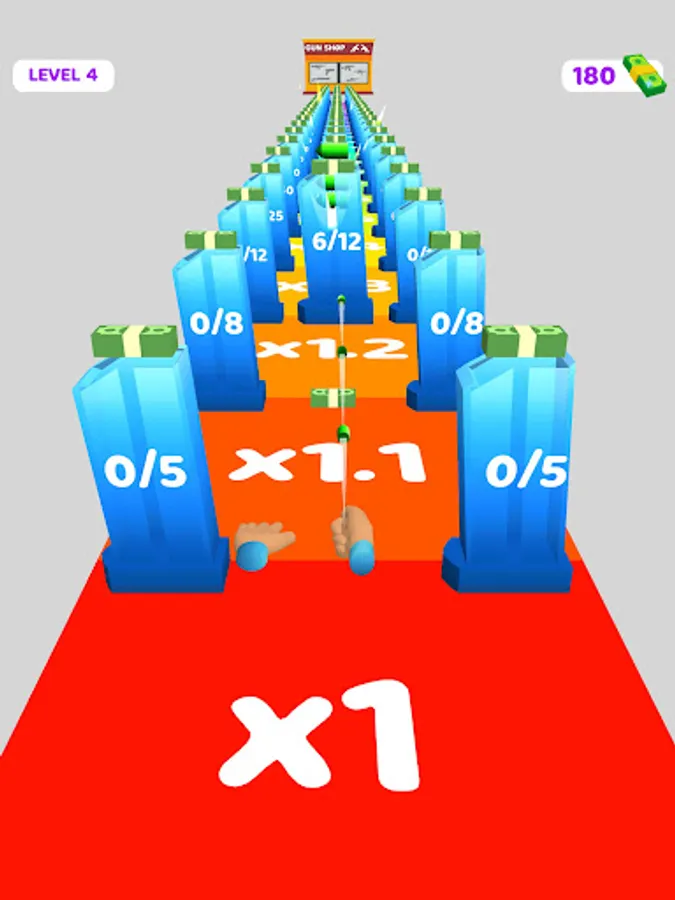 Fill the magazines to have better weapon then shoot stickmans to get money! You can use your bullets to fill magazines and also shoot the oldmans to be able to get the effect of gates by the help of hands on your path!