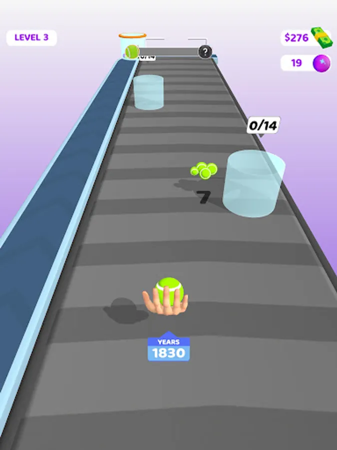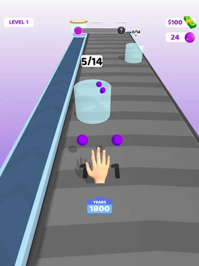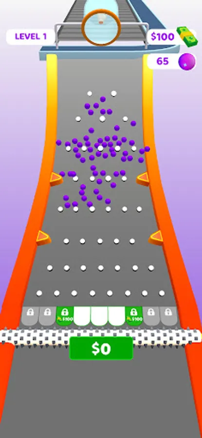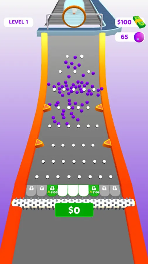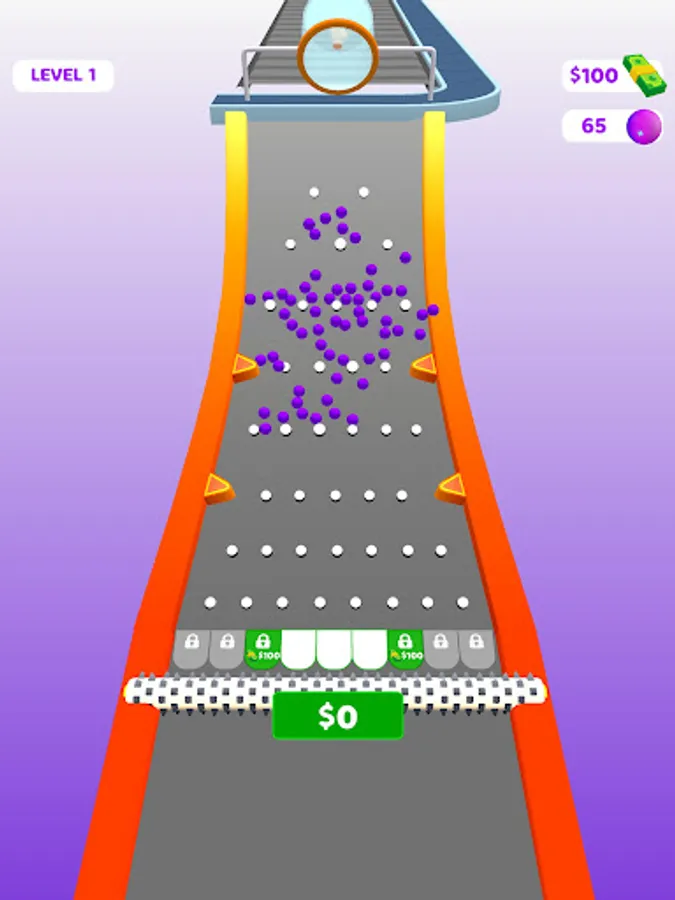 Collect balls into the glasses to be able to choose skill in milestone to get better! You will use those balls in level end part to gain money from them by using the bags and the grinder also! You can have better bags by merging them!