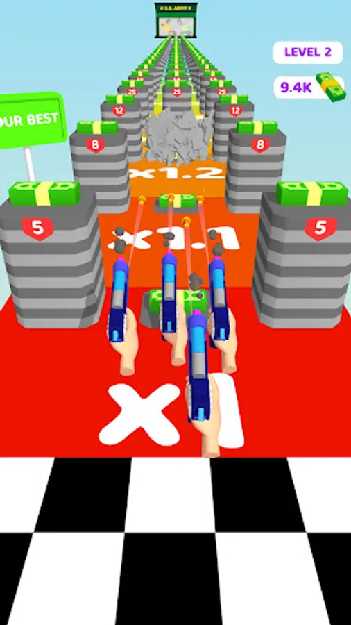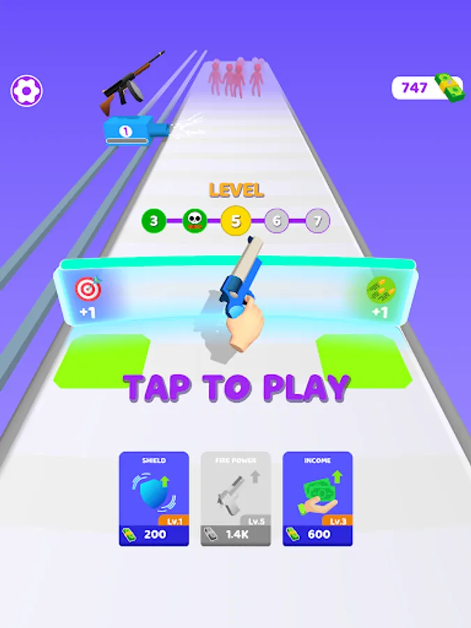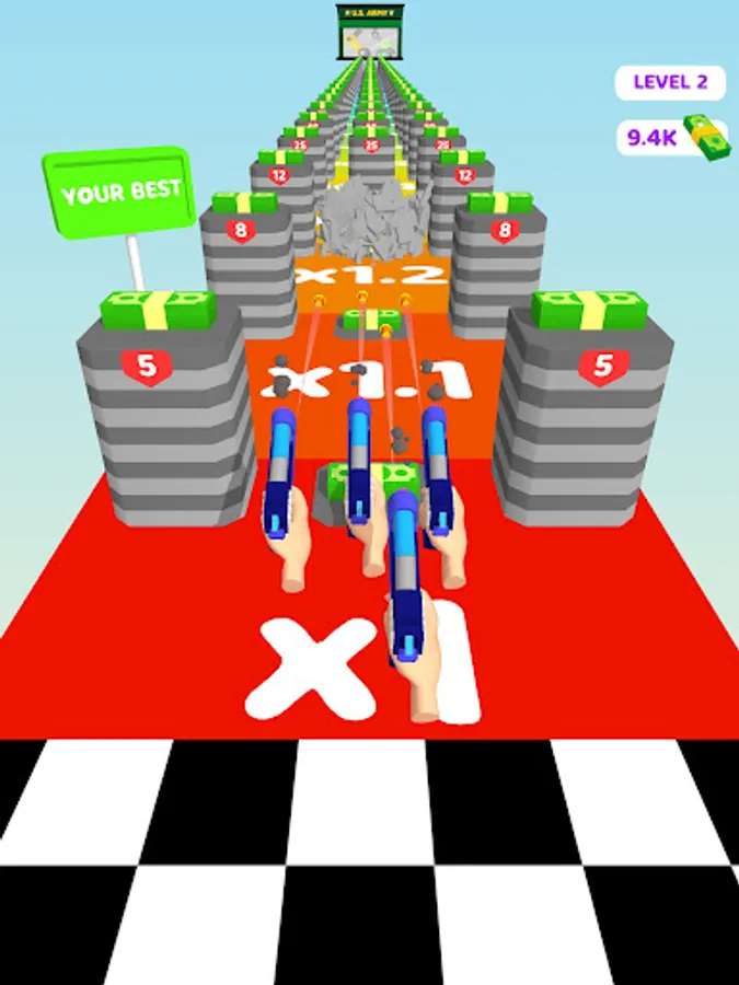 Try to get stickmen's tags and have a better turret! There are some towers carrying rewards on them! If you can demolish a tower you will be rewarded! You should try to shoot the chest and get better reward! At the middle of levels, you will control the turret you build to destroy paratroops!