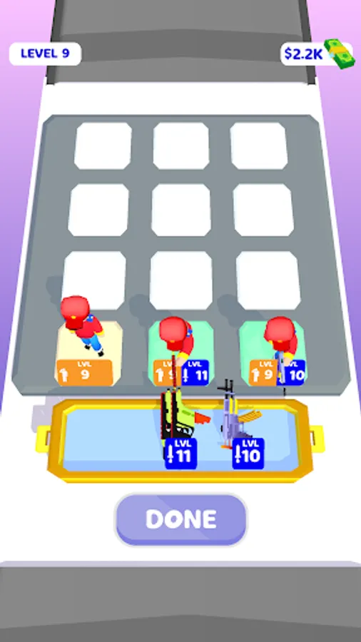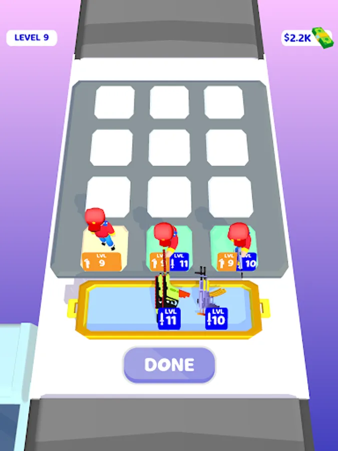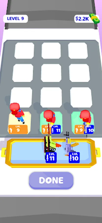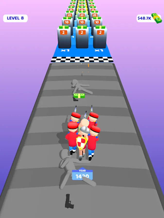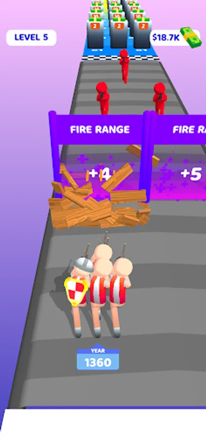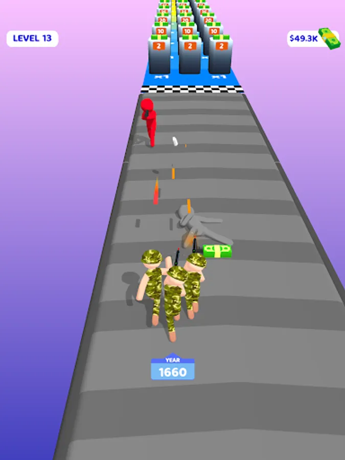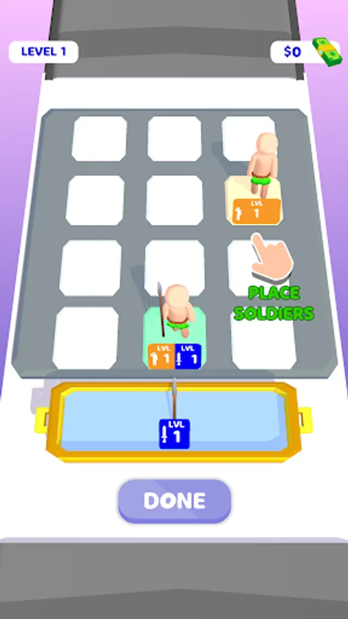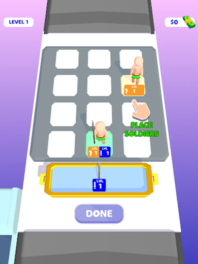 Build your army with the strongest soldiers and weapons! Place them wisely to win the war! Upgrade your rate, range and year stats within the level by using doors! At the end of the level, reach to the further point!
