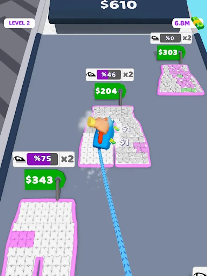First you knit clothes, then iron them all. If you knit and iron it completely, you will double money! Upgrade your iron and knitting rope for being a knitting master. Do you think you can do it?