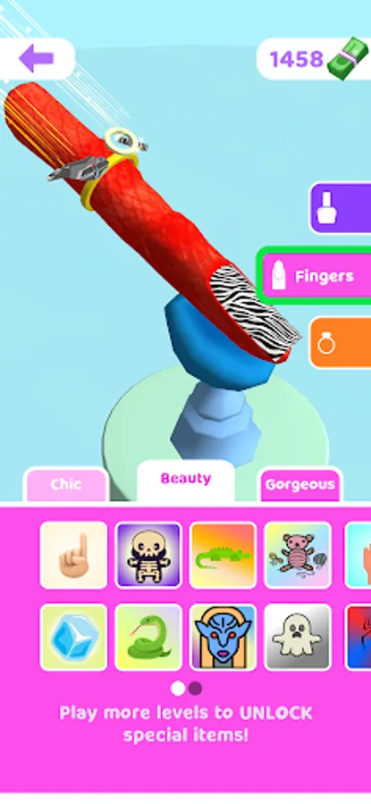 Longer the nails, bigger the prize! Collect all the nails, swerve around nailbiting heads and vicious saws. Paint your nails with colorful nail polishes and decorate them with shimmer!