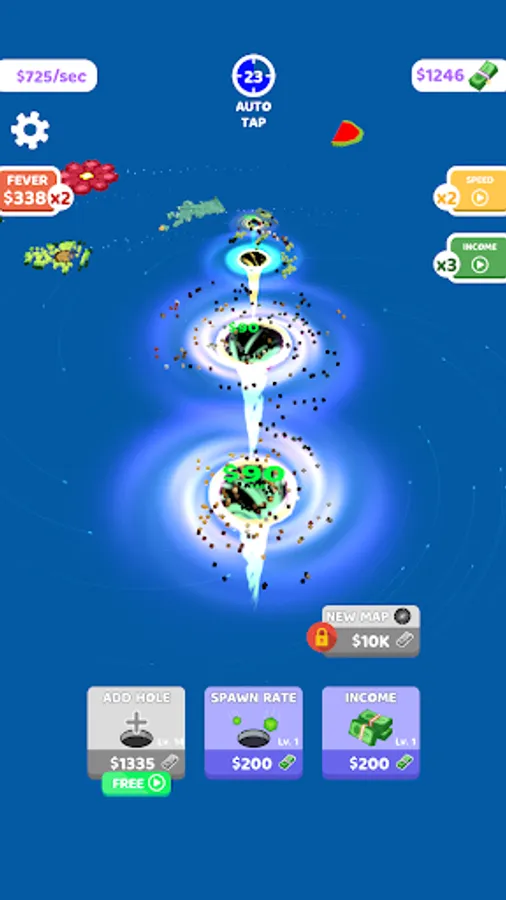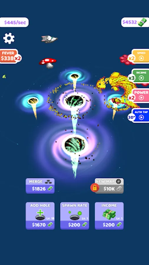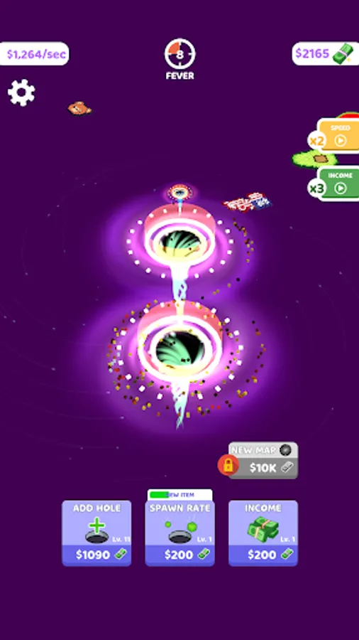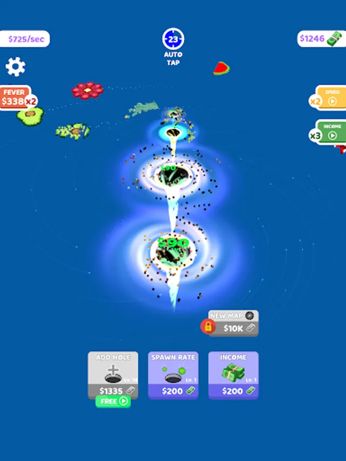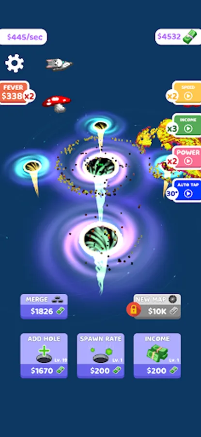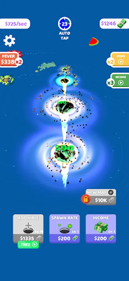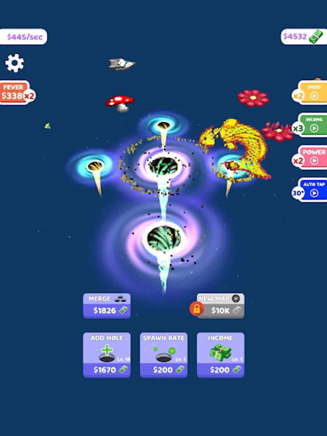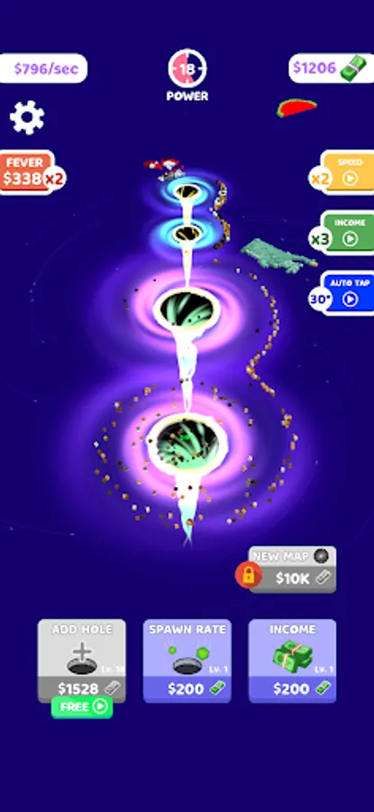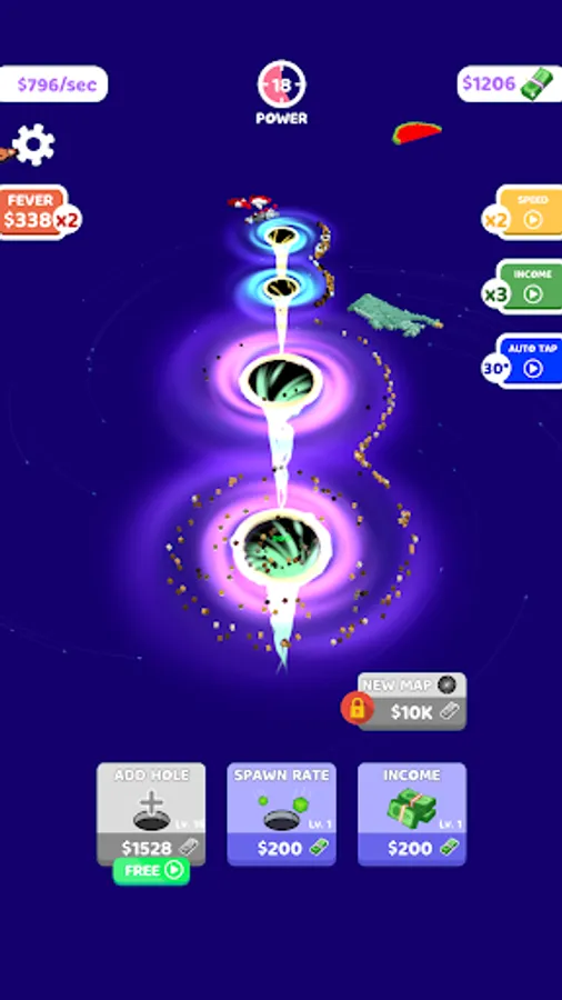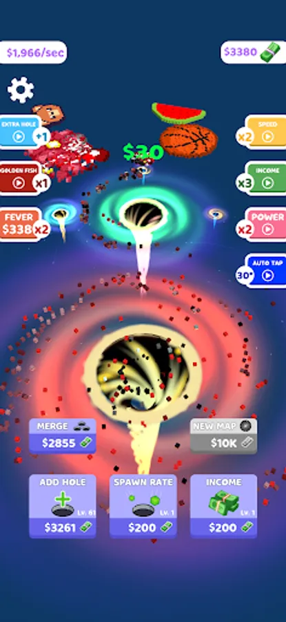 Smash all new objects and swallow every piece. Keep making money from every piece you send into the black hole. Expand your black hole and destroy more pieces!