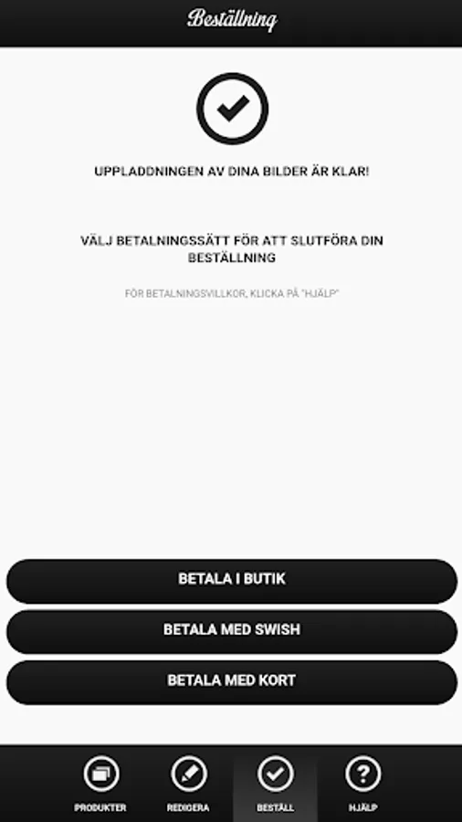 Simply order hard copies of pictures from your phone's photo albums and have them sent to your home or pick them up at our store in Gothenburg. You pay your order directly in the app with the card or when you pick up your photos at the store.