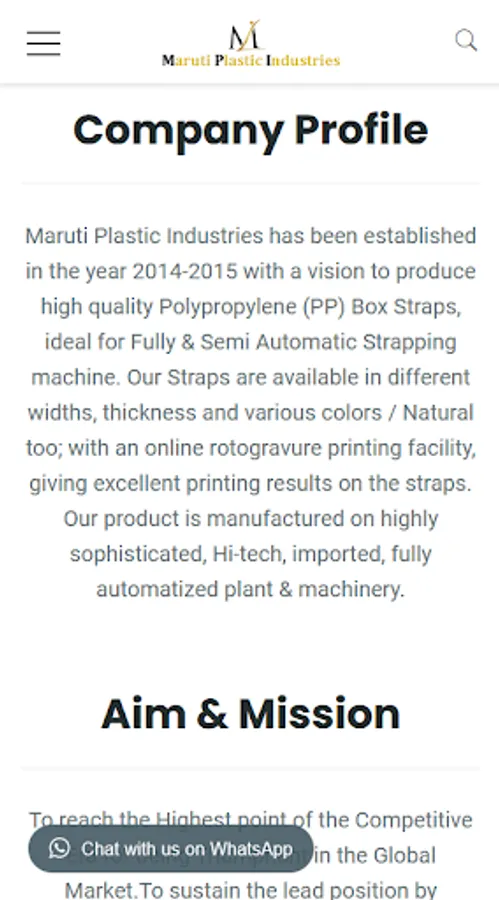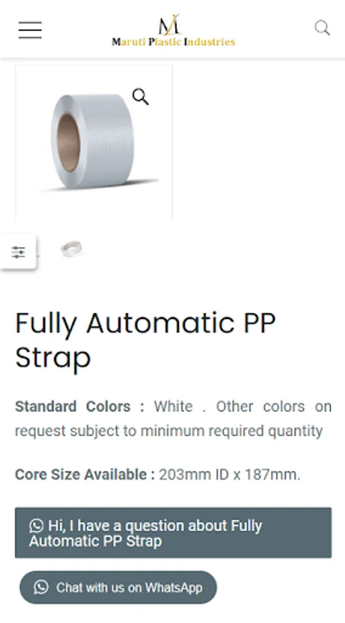 Maruti Plastic Industries has been established in the year 2014-2015 with a vision to produce high quality Polypropylene (PP) Box Straps, ideal for Fully & Semi Automatic Strapping machine. Our Straps are available in different widths, thickness and various colors / Natural too; with an online rotogravure printing facility, giving excellent printing results on the straps. Our product is manufactured on highly sophisticated, Hi-tech, imported, fully automatized plant & machinery.