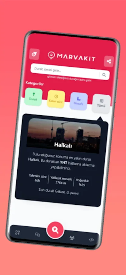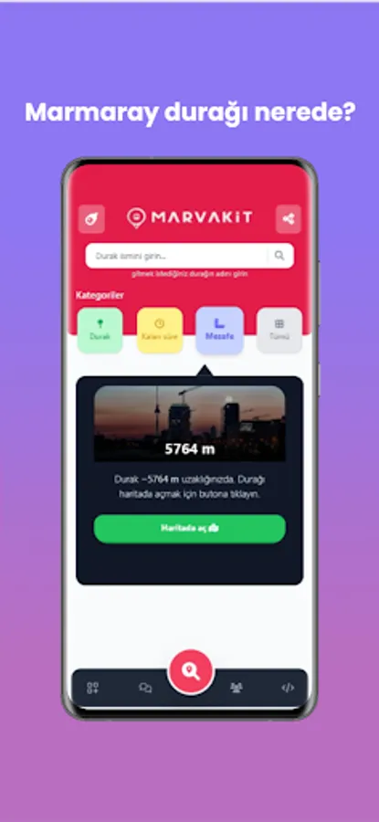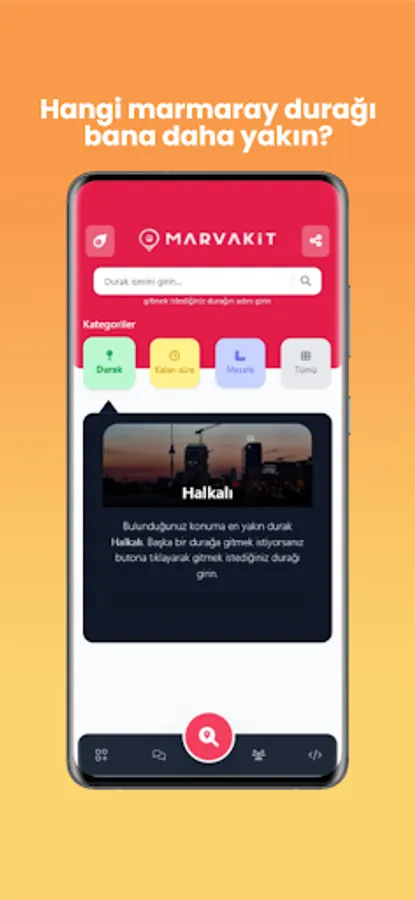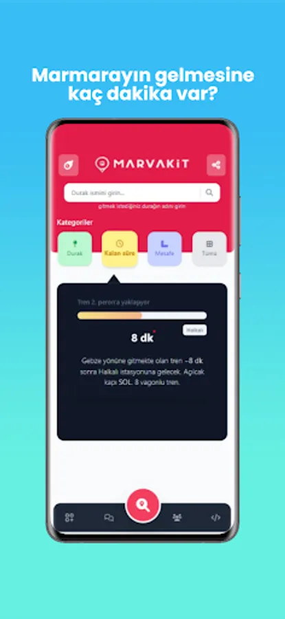 Marvakit, which will be useful for those who use the Marmaray transportation vehicle in Istanbul, shows you the arrival times of the trains to the platform, the name and approximate distance of the marmaray stops closest to you.