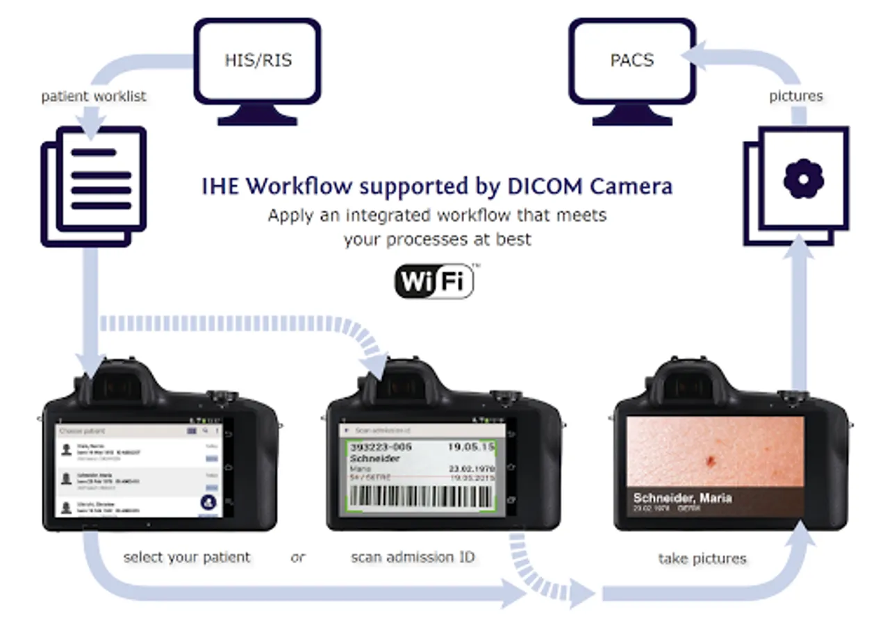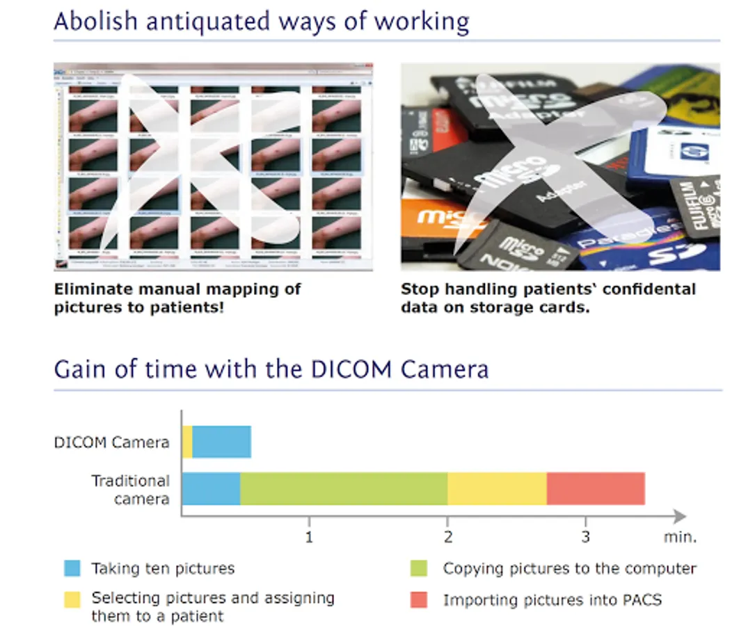* DICOMizes your photo and video documentation in all medical departments, e.g. Wound documentation, dermatology, surgery, ophthalmology, geriatrics, psychiatry