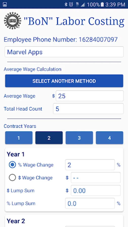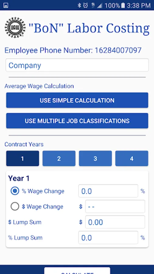 UAW BON Calculator Screenshots