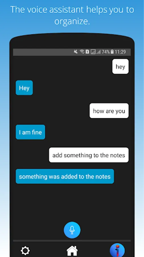 Use the Voice assistant to easily add, list, and read things ofthe rubrics or to stop, to reverse or to fast-forward a song.