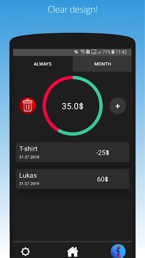 The Finances section helps you to manage your current financial situation and to get a sense of security in spending or revenue.