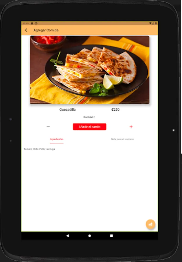 In this application you will be able to see the affiliated restaurants in the area as well as their menus so that in this way you can order food directly from the application without the need to make a call