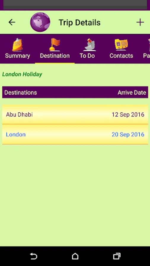 Trip Planner is a utility application which assist one in planning his holiday, vacation, business trip plans in detail. Breaking the trip in destinations makes the storing of travels details, accommodation location, places to visit and activities a breeze. Travel information can be stored on the Cloud, saven in files or exchanged via email.