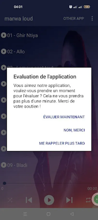Dans cette application, vous trouverez les meilleures chansons et nouveautés de Marwa Loud. Téléchargez l'application gratuite sur vos smartphones pour une durée illimitée et profitez des meilleurs hits avec un son de haute qualité et sans Internet.