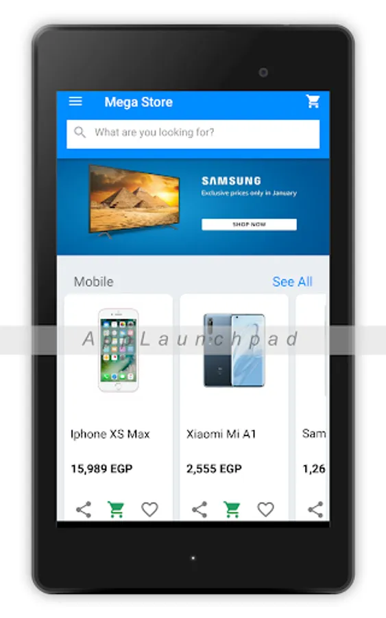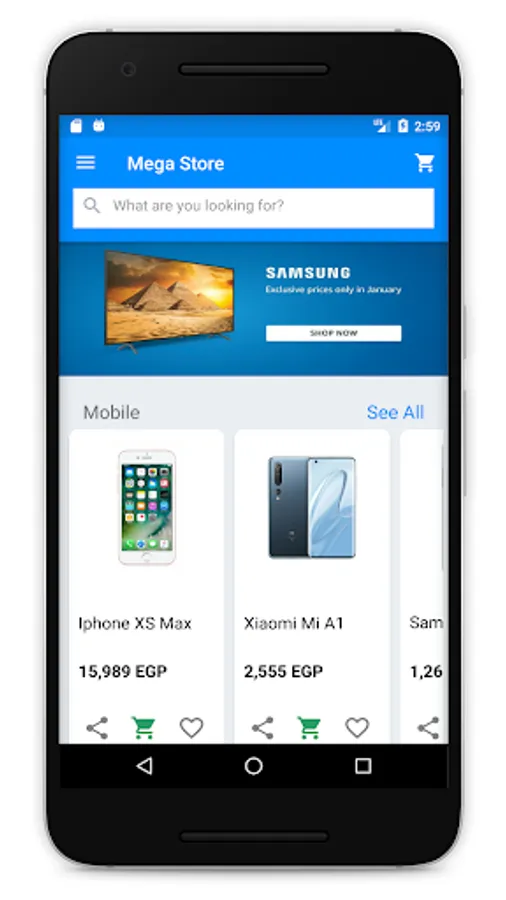 Mega store app facilitate general public, they can buy items online and delivery at home is available with cash on delivery time. free shipment is available for customer, and they can pay at the time of delivery. app facilitate people they no need to go physically on store, they can buy items online and with 24 hours time frame they can get products at their home