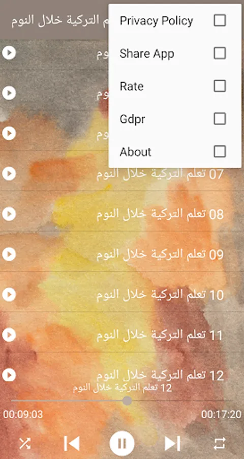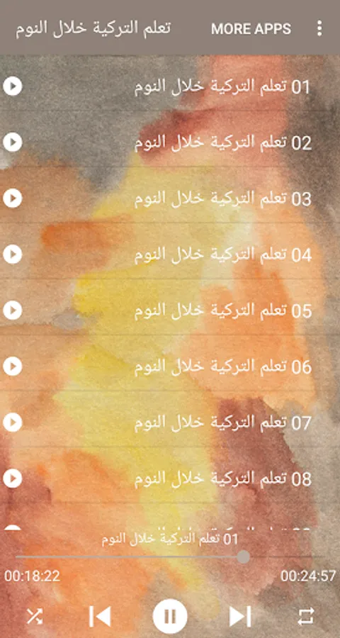 تطبيق يسمى "تعلم التركية بدون انترنت". إنه مصمم لمساعدة الناس على تعلم اللغة التركية دون الحاجة إلى اتصال بالإنترنت. يعتمد التطبيق على فرضية أنه يمكن للناس التعلم بشكل أفضل أثناء نومهم، ويستخدم سلسلة من التسجيلات للمتحدثين الأتراك الأصليين لمساعدة الناس على تعلم اللغة.