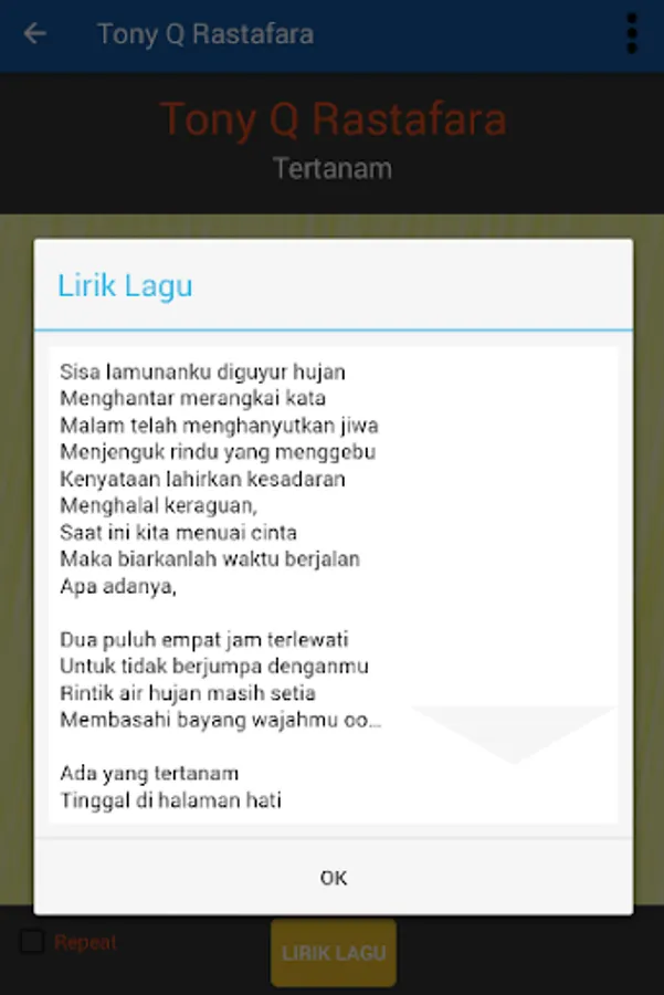 This time we have presented the most famous song from Tony Q Rastafara. Easy access makes fans of the artist's songs so relaxed and relaxed listening to the best songs. We continue to improve in order to keep users happy. We have put the lyrics in it as a help to sing.