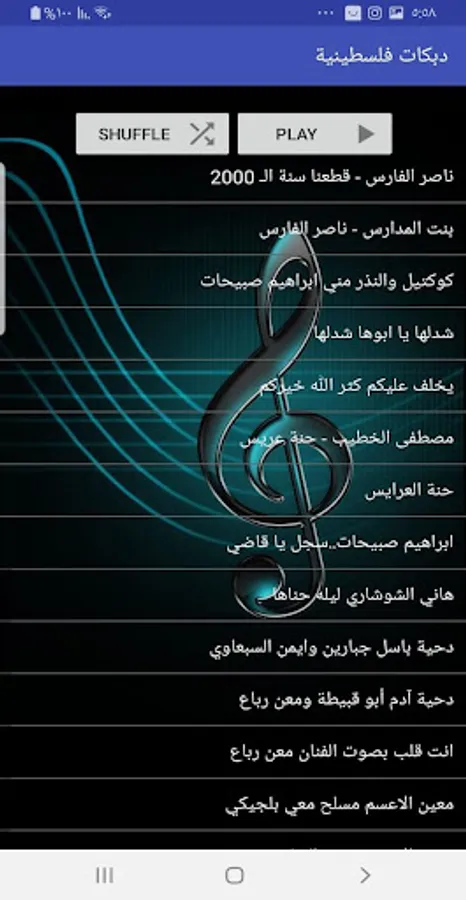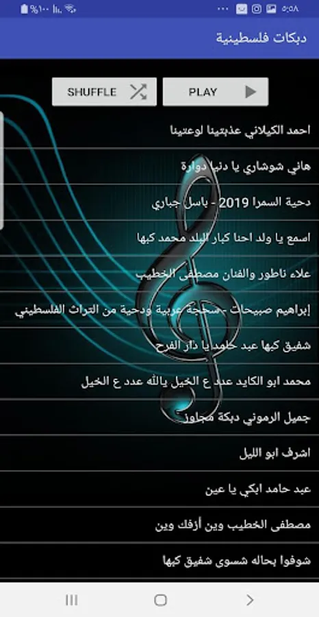 Within the application a lot of popular Palestinian songs Nasser Knight Abdul Hamid Ayman Sabawi and certain Alasam and Qasim Najjar