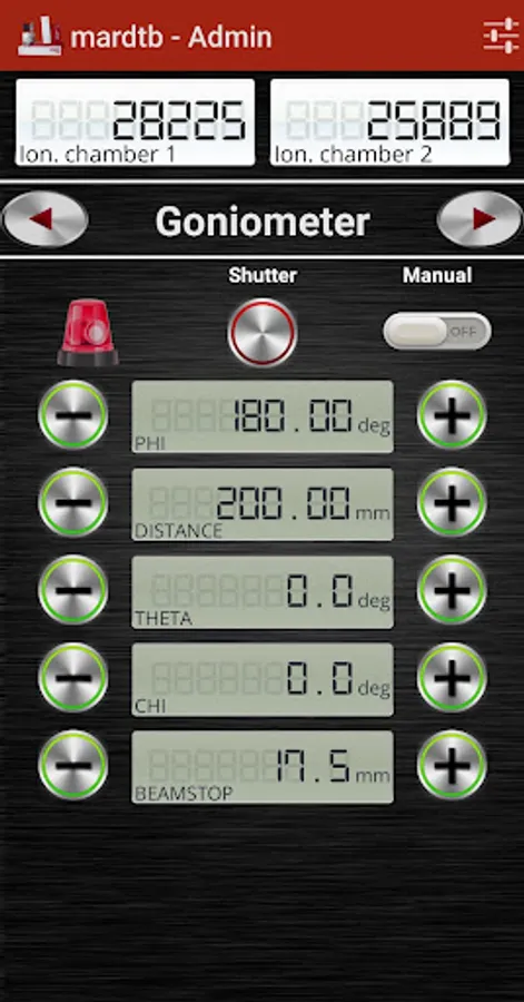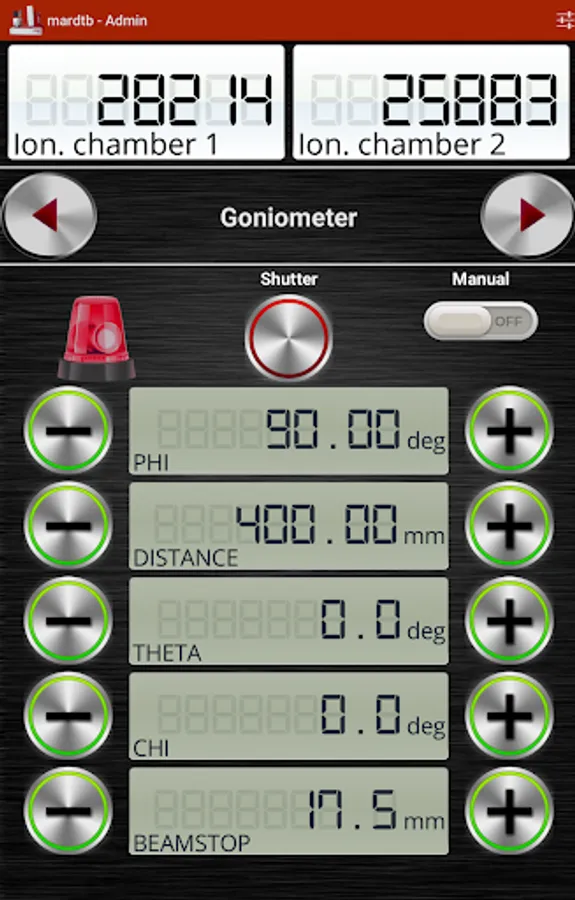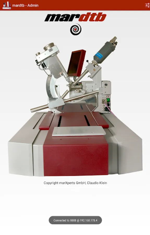The mardtb app connects to a running instance of the mardtb control program that controls the "desktop beam line" goniometer system produced by marXperts. The app allows to drive all motors, to operate the X-ray shutter, to do beam optimizations. You can even trigger a data collection. Incoming images can be displayed on the mobile device. It also supports display of images collected from a webcam that supervises the experiment