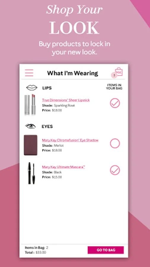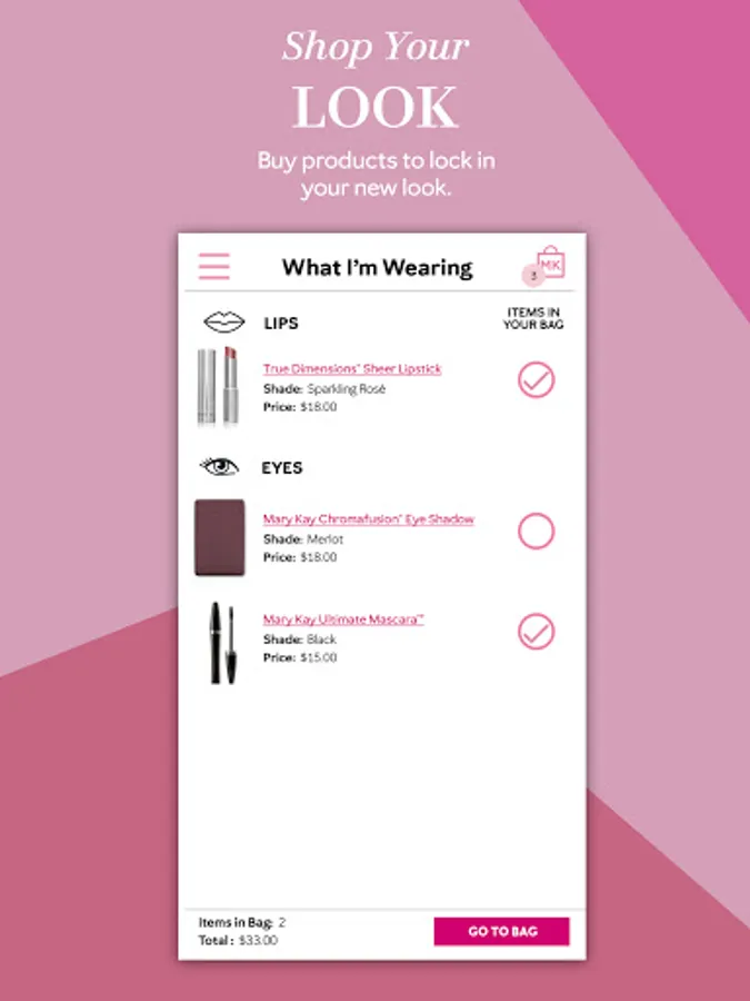 - Share looks that you design or full looks created by Global Beauty Ambassador Luis Casco with friends across social media platforms, email or save to your device for inspiration. Shop as you play by adding the products you love to your marykay.com bag straight from the app.