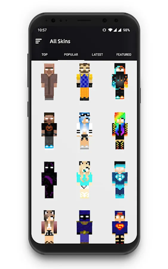 With white eyes, hot Skins, zombies, gast, villager, baby, endermen, letsplayers, with ears, pvp, scary skins, creepypasta, skins with capes, mobs, by nicknames, camouflage and many other skins you can download in this application.