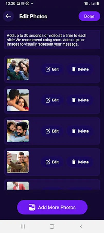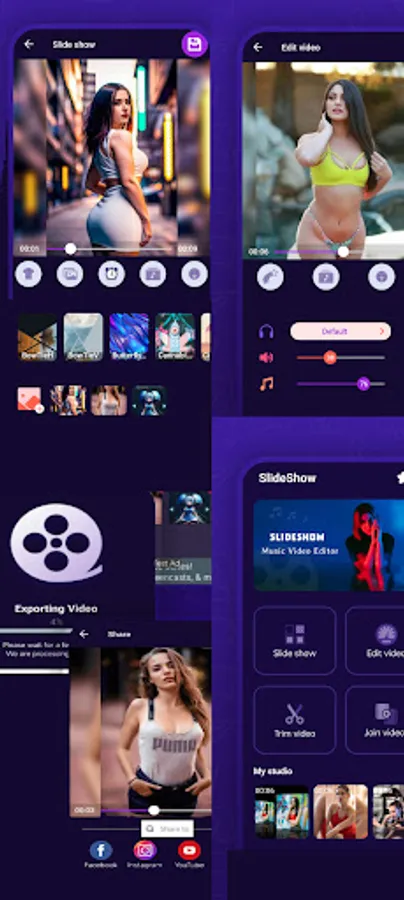 -> Edit photos right in the photo video maker, wait a bit and enjoy the video artwork from images and songs you've just created.
