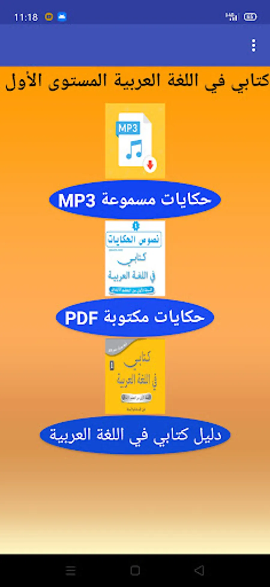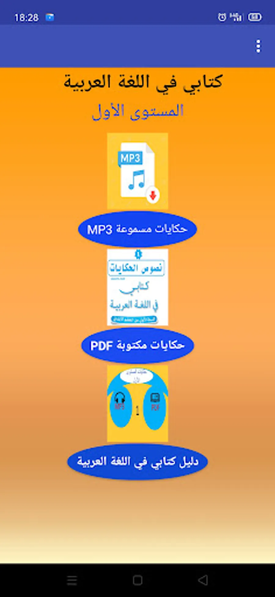 تطبيق حكايات المستوى الاول كتابي في اللغة العربية يتضمن حكايات صوتية و أخرى نصيّة ، يهدف التطبيق الى تيسير عمل الاساتذة الكرام و المتعلمين على حد سواء.