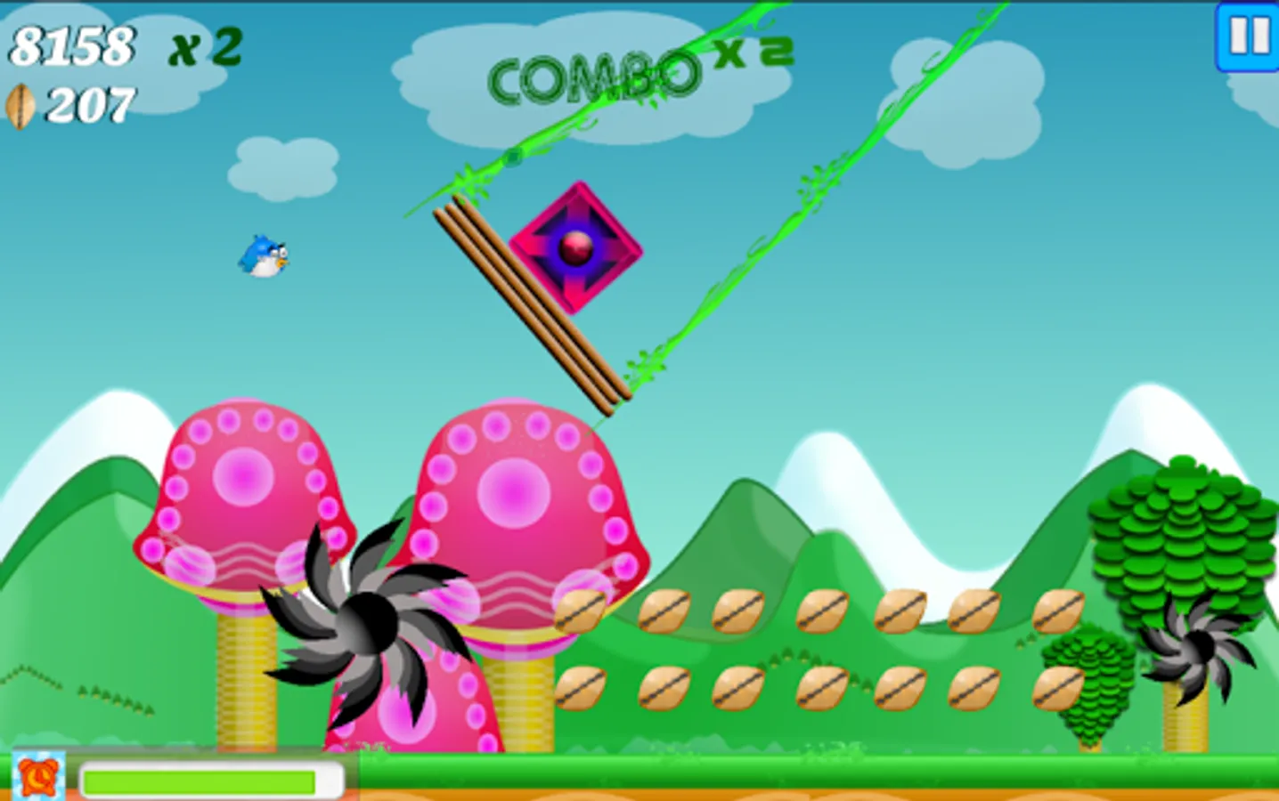 Addictive One Thumb 2d side scroll game-play .cool game with unique features such as slow movements, tiny time, rock solid.Also Introduce Combo System .if bird very close the obstacle player got the combo and its increase n increase as how many time bird close the obstacle .