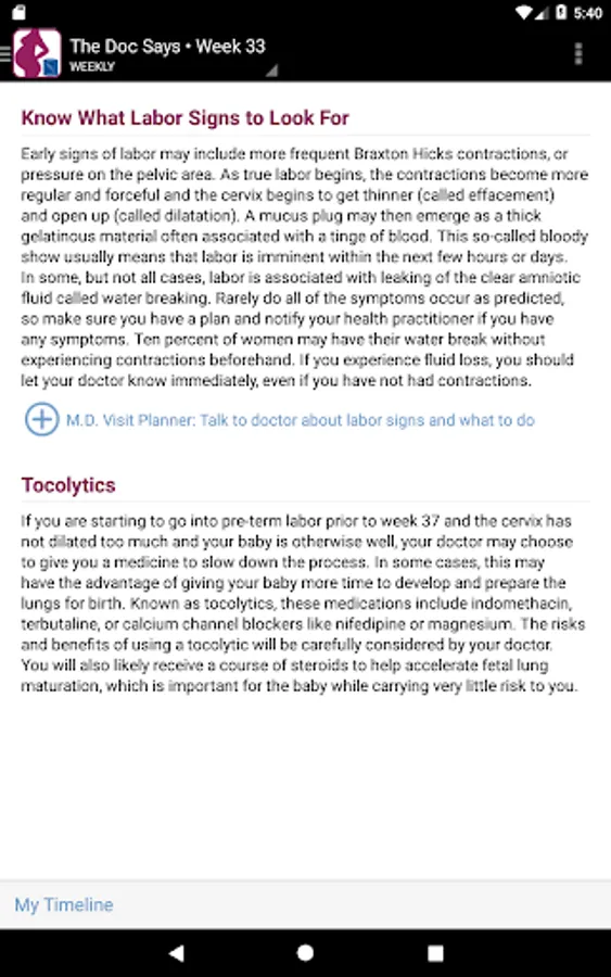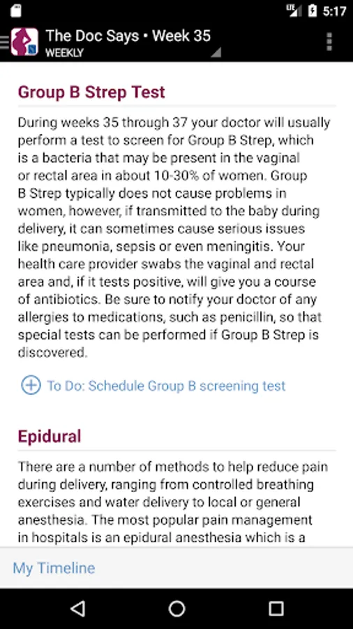 Here you can also find your pregnancy timeline, with an approximation of when certain things will happen during your pregnancy.