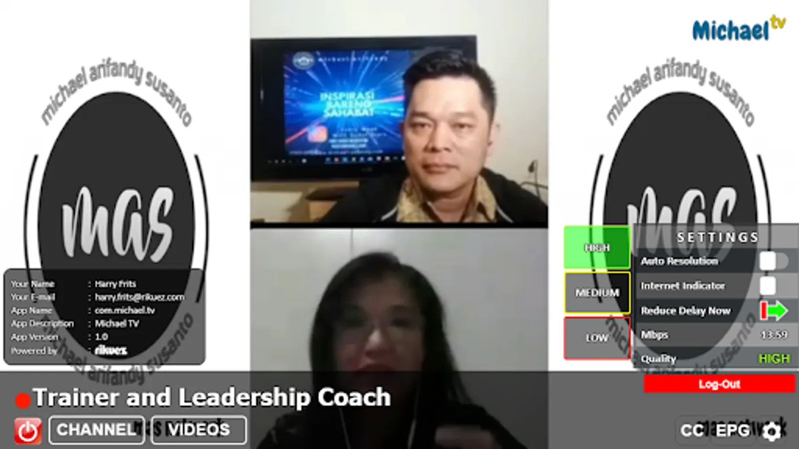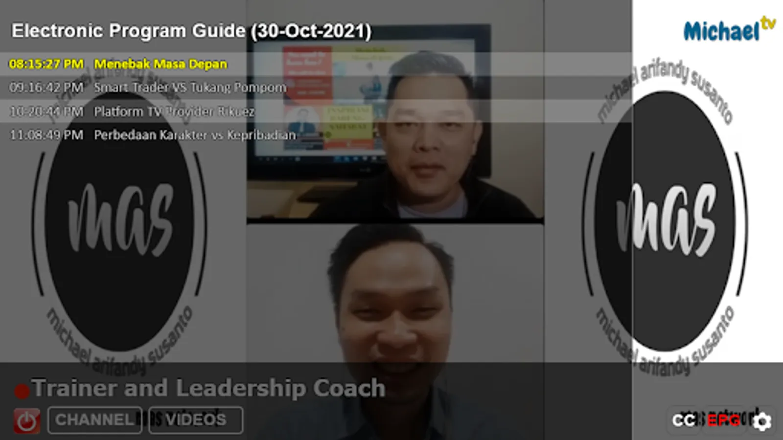 MichaelTV is a tv application that displays discussion videos on business-related matters. More precisely, video content is included in the "Trainer and Leadership Coach" category. Michael Arifandy Susanto S.E, CTM, as the owner of the tv application as well as the host, is a Certified Theocentric Motivator, RAVE Sales Trainer and Leadership Coach.
