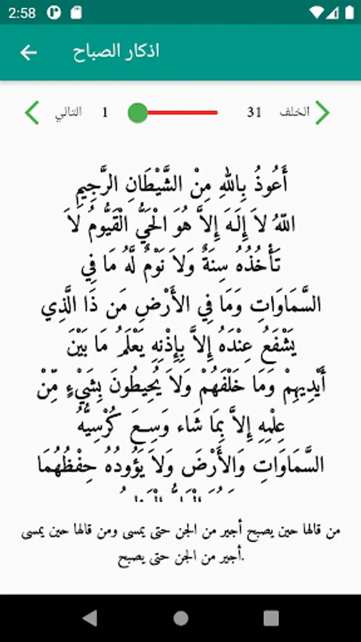 The morning and evening remembrances are remembrances that every person must remember at dawn and at sunset, and they protect him throughout his day, and here in my application this I have collected the morning and evening remembrances, rain and others. All this is to rest the soul and earn a great reward with God.