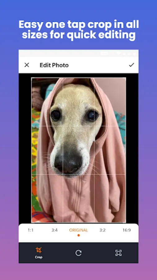 👉 With the Image Cropper feature, you can easily crop your photos to remove unwanted parts of the image or to zoom in on specific details. The app has a wide range of aspect ratios to choose from, so you can crop your images to fit perfectly on any platform or social media platform.