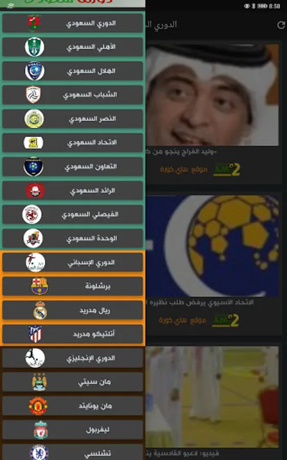 So that this application contains a list in the news of the Saudi League and the most important Saudi clubs such as Al-Ahly, Al-Ittihad, Al-Shabab, Saudi Arabia and Al-Nasr. It also contains news of Barcelona and Real Madrid, the Spanish League, the English League, the German League and the Italian League. Scorers, upcoming matches and previous matches, with details of the most important sports sites