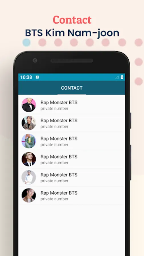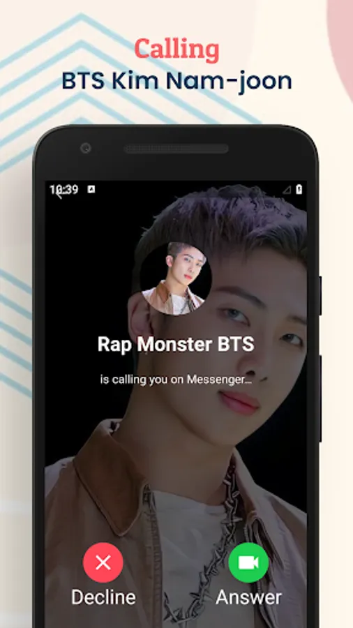 With this application you can prank your friends as if you were on the phone of your favorite artist, Rap Monster BTS. Your friends must think that you have a Rap Monster BTS phone number. You can also show off with your friends by taking a screenshot during a video call and then sharing it on your social media.