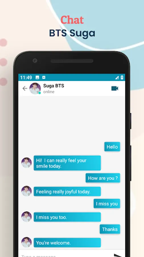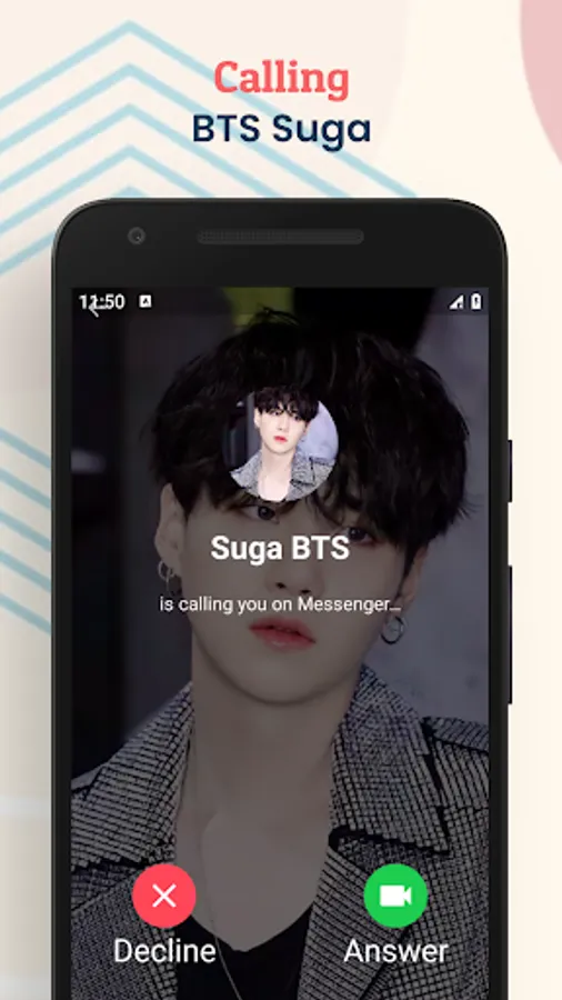 With this application you can prank your friends as if you were on the phone of your favorite artist, BTS Suga. Your friends must think that you have BTS Suga's phone number. You can also show off with your friends by taking a screenshot during a video call and then sharing it on your social media.