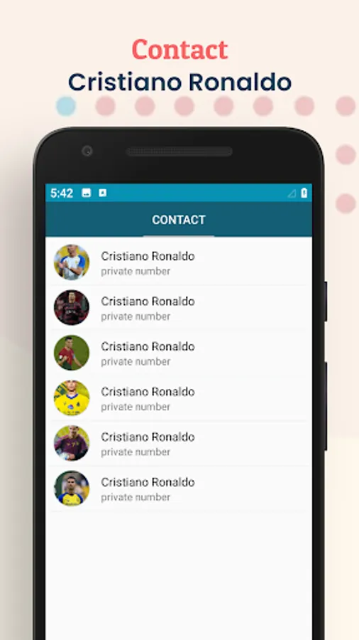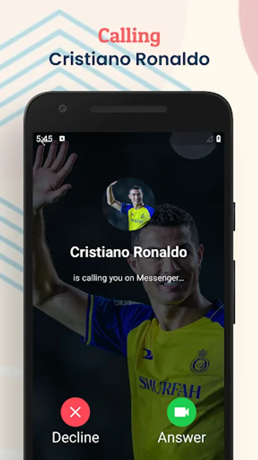 With this application you can prank your friends as if you were on the phone of your favorite artist, Ronaldo CR7. Your friends will think that you have Ronaldo CR7's phone number. You can also show off with your friends by taking a screenshot during a video call and then sharing it on your social media.