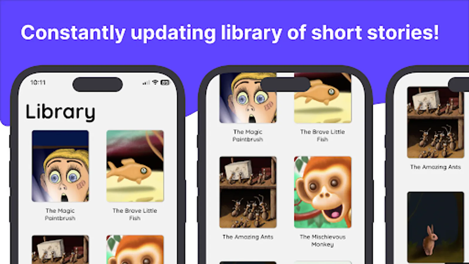 With a constantly updating library of short stories, you'll have a variety of options for books to read at bedtime or for children to read by themselves!