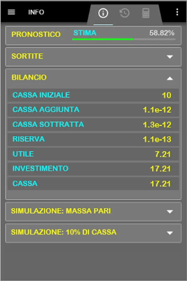 Calculator for classic Masaniello, Roserpina, Masarange, Ercules (consecutive errors), Masareale, Masatotale, free bets and bankers, with new tools to apply thousands of new strategies for investments, bets, trading, poker and all games.