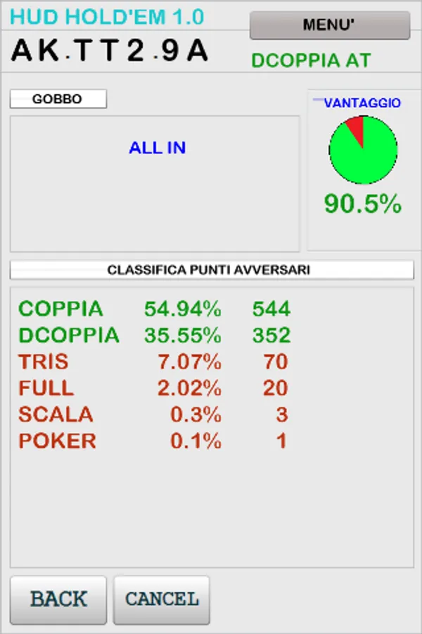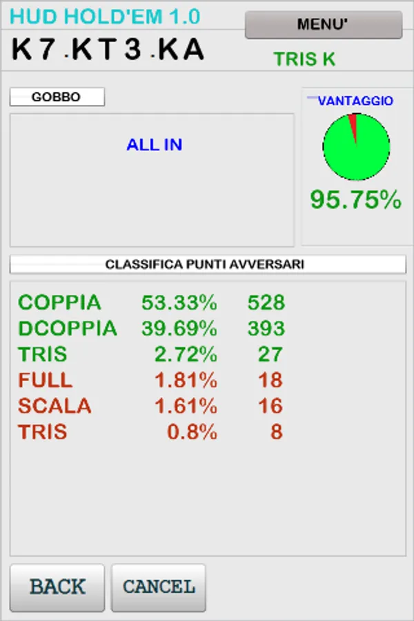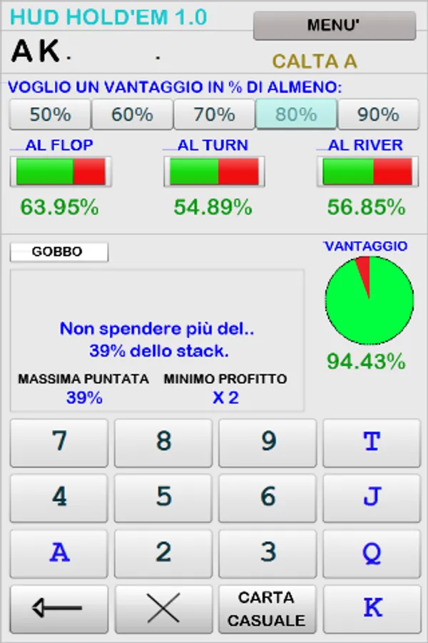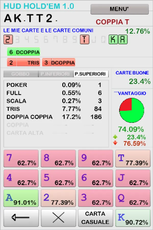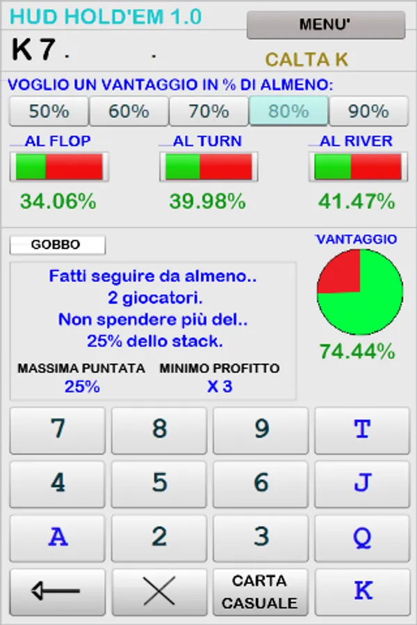 poker calculator for Texas Hold'em. One of the few available. There follows step-by-step in tournaments and shows suggestions on what to do. Spy opponents' cards.
