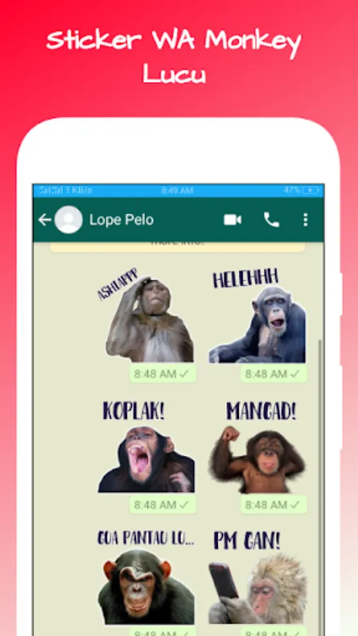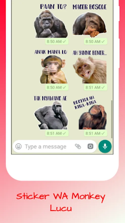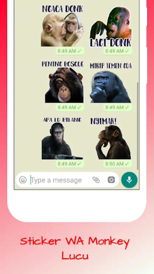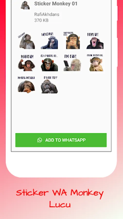 WAstickerApps Monkey Funny stickers are more with millennials packaged in 4 packs of stickers. WA Cute Monkey stickers provide you with fresh entertainment while chatting with friends or in Whats * pp group messaging. Come on free download and give ratting 5 stars because the Cute Monkey Stickers will continue to be added in the next update.