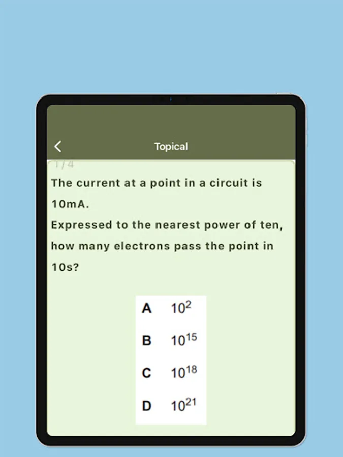 OCR AS Physics Topical MCQs (2016 - 2020) with solutions. As I myself am just a student, there might be poor explanations, mismatched ques/ans. Please feel free to email me at masaqib5@gmail.com with corrections/suggestions.