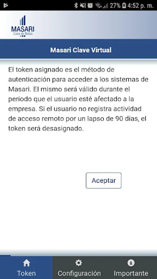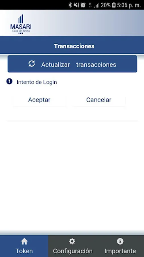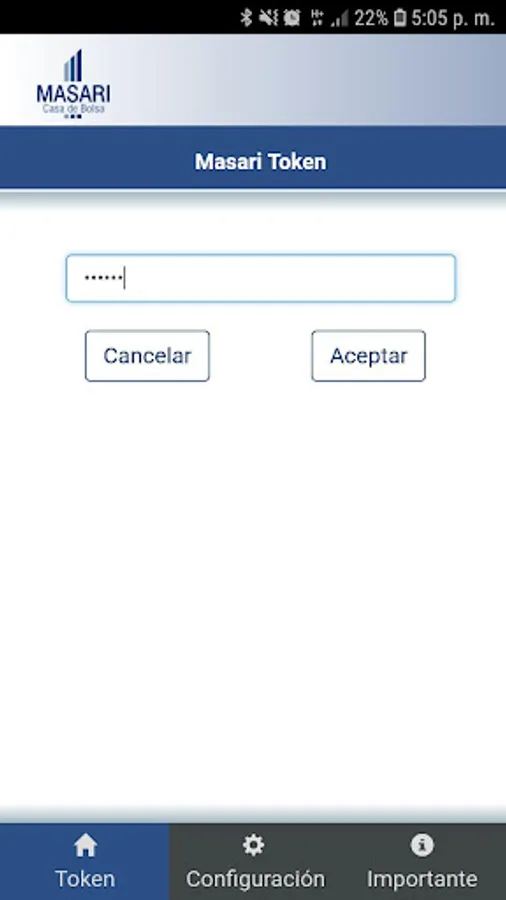 Masari-Mobile is a second authentication factor that allows you to generate, from an application installed on your mobile device, the authorization required to confirm operations on the MasariNet portal.