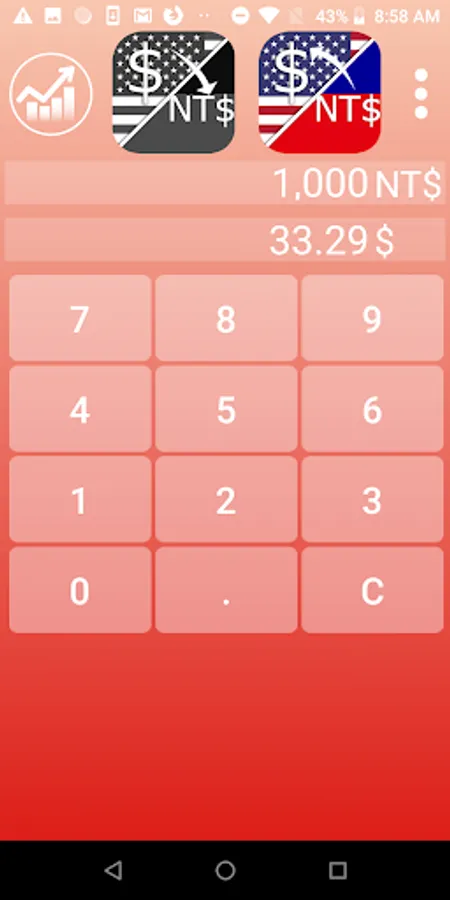 Direct USD - TWD conversion, without menus or half-way steps. Withpout popup small keywords.