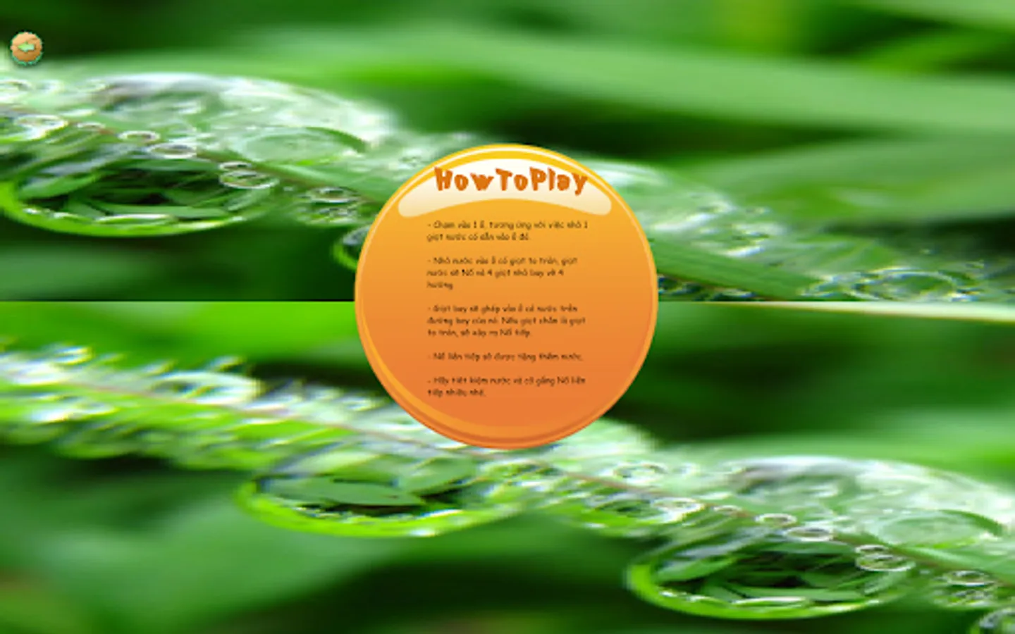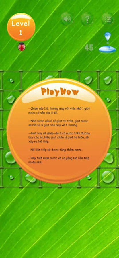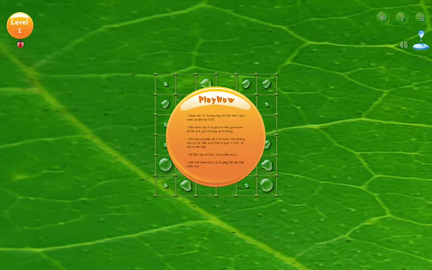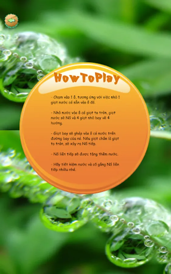 - User drops water until all cells have no more drops of water, the screen will pass.