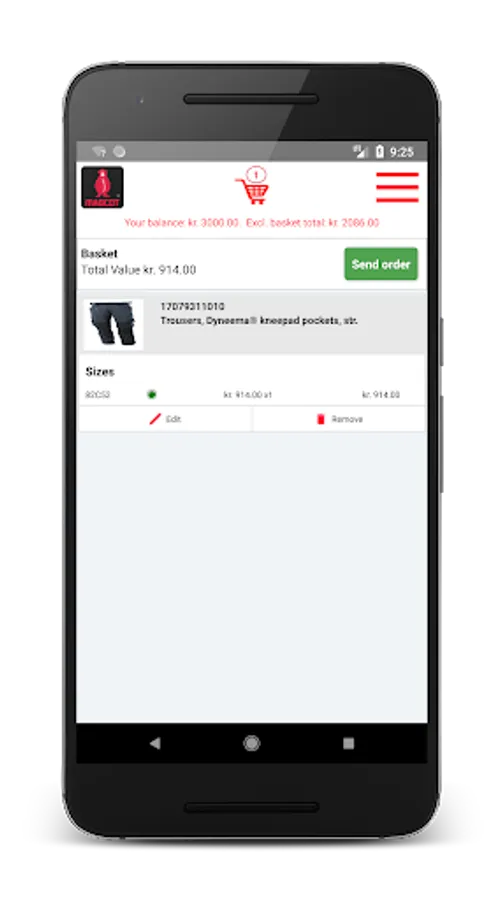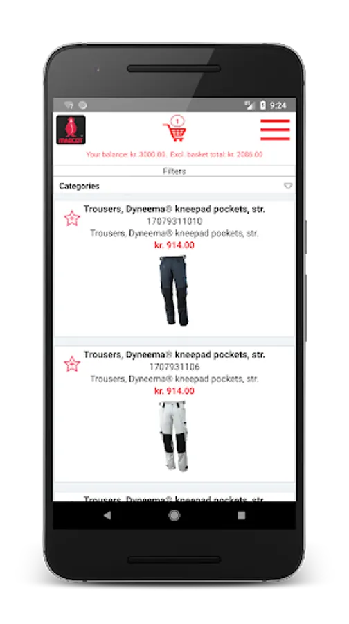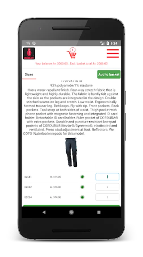 It is then possible for the employee to log in to the account using the app to order workwear appointed to him/her by the company. In addition to workwear, the employee can order a number of extra services such as application of company logos and/or employee name, application of reflective strips, shortening of trousers and other services predefined by the company.