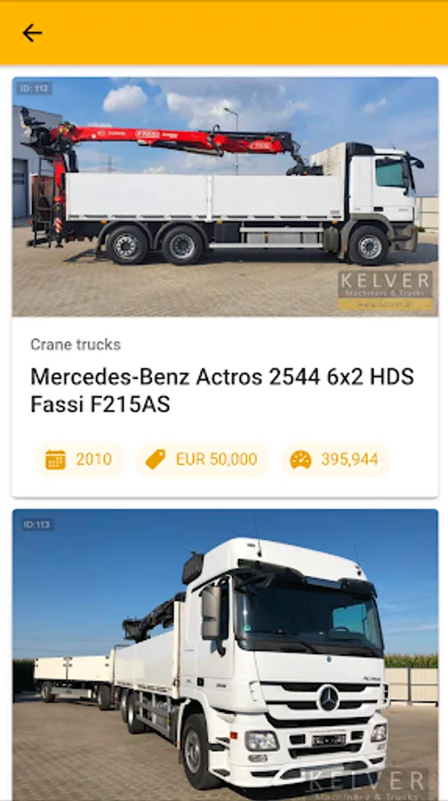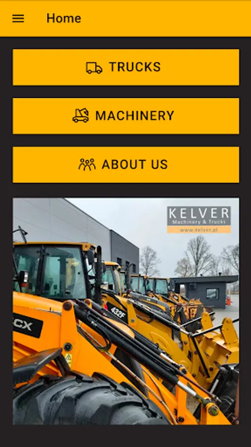 KELVER Machinery & Trucks application is the optimal solution for customers looking for new or used construction machines such as: wheeled excavators, tracked excavators, mini excavators, backhoe loaders, loaders, dumpers, bulldozers, road rollers, tippers, trailers, semi-trailers, low-loaders and trucks.