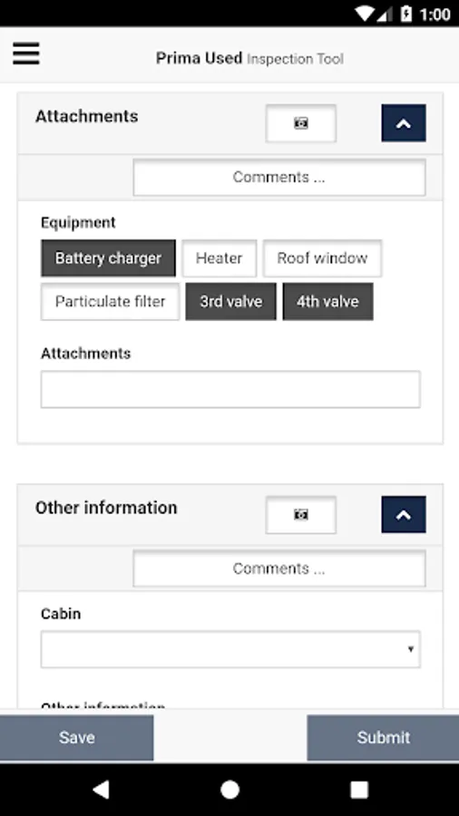 This Inspection App Tool is intended to carry out detailed inspections on all Used Equipment.