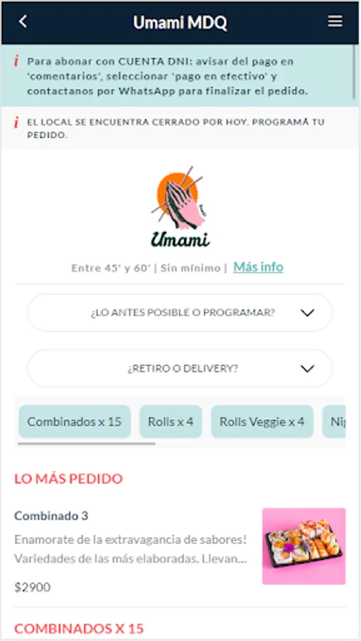 Put together your order in less than a minute choosing from our menu the food that you like the most!