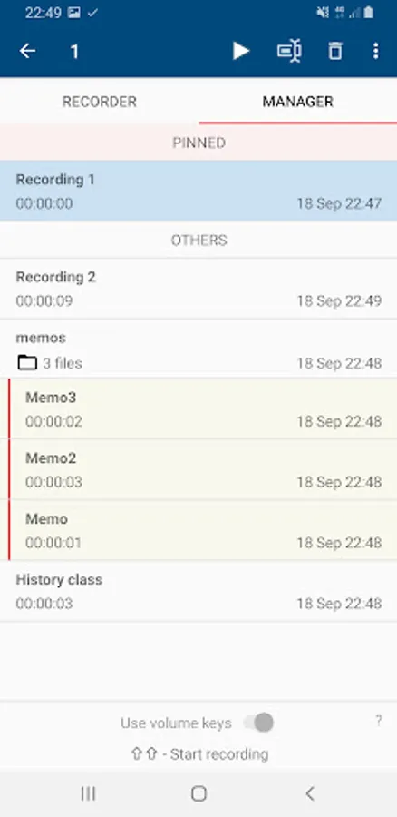 A powerful sound recorder with awesome feature to Control recording using the volume keys!