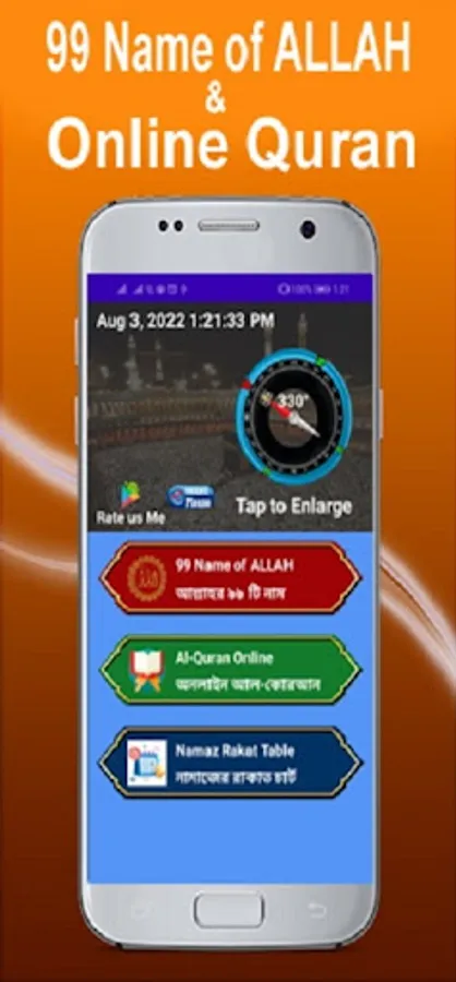 This Qibla Compass/ Qibla Direction/ Quran Islamic app provides the 99 names of ALLAH in English, Bengali with meaning.